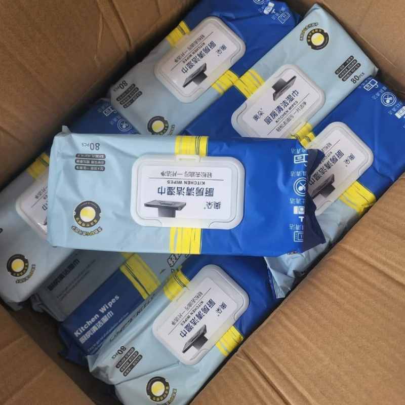 Nguồn sỉ khăn Ướt Lau Bếp Đa Năng – Khăn Lau Bàn Bếp Bát Đĩa Đa Năng An Toàn 1 Gói 80 Miếng 30x11x5cm