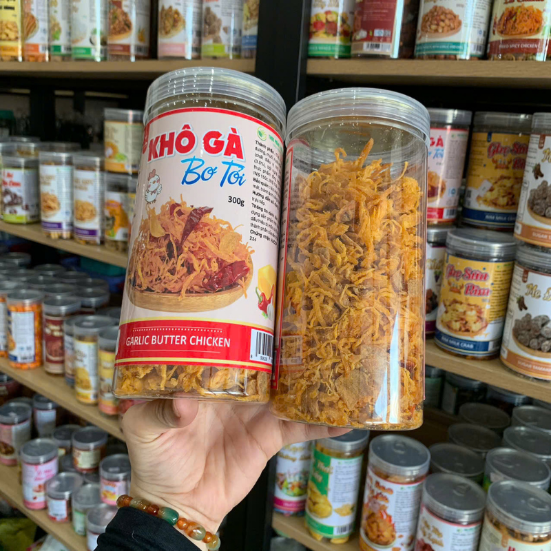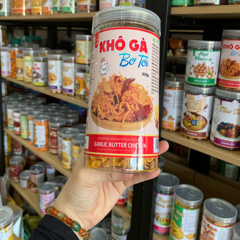Nguồn sỉ khô Gà Bơ Tỏi Thơm Ngon 300g Hộp