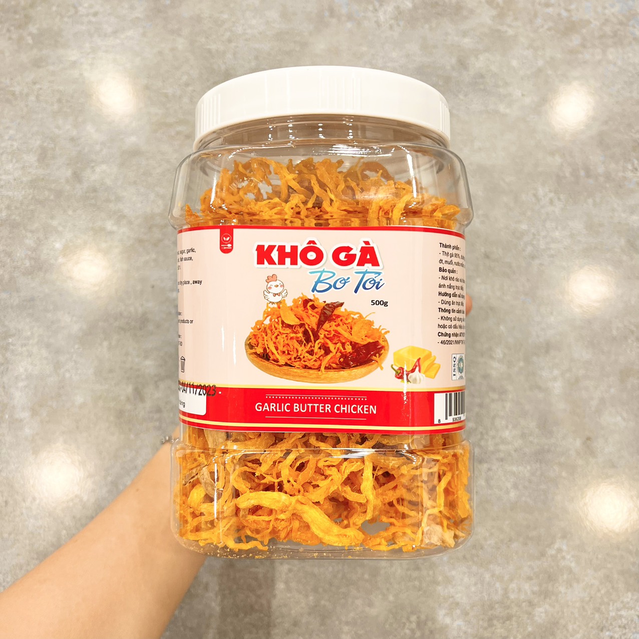 Nguồn sỉ khô Gà Bơ Tỏi Thơm Ngon 500g hộp