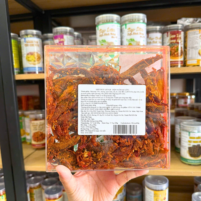 Nguồn sỉ khô Trâu Xé Sợi – Khô Tẩm Vị Bò 450g Hộp Ngôi Sao Lớn
