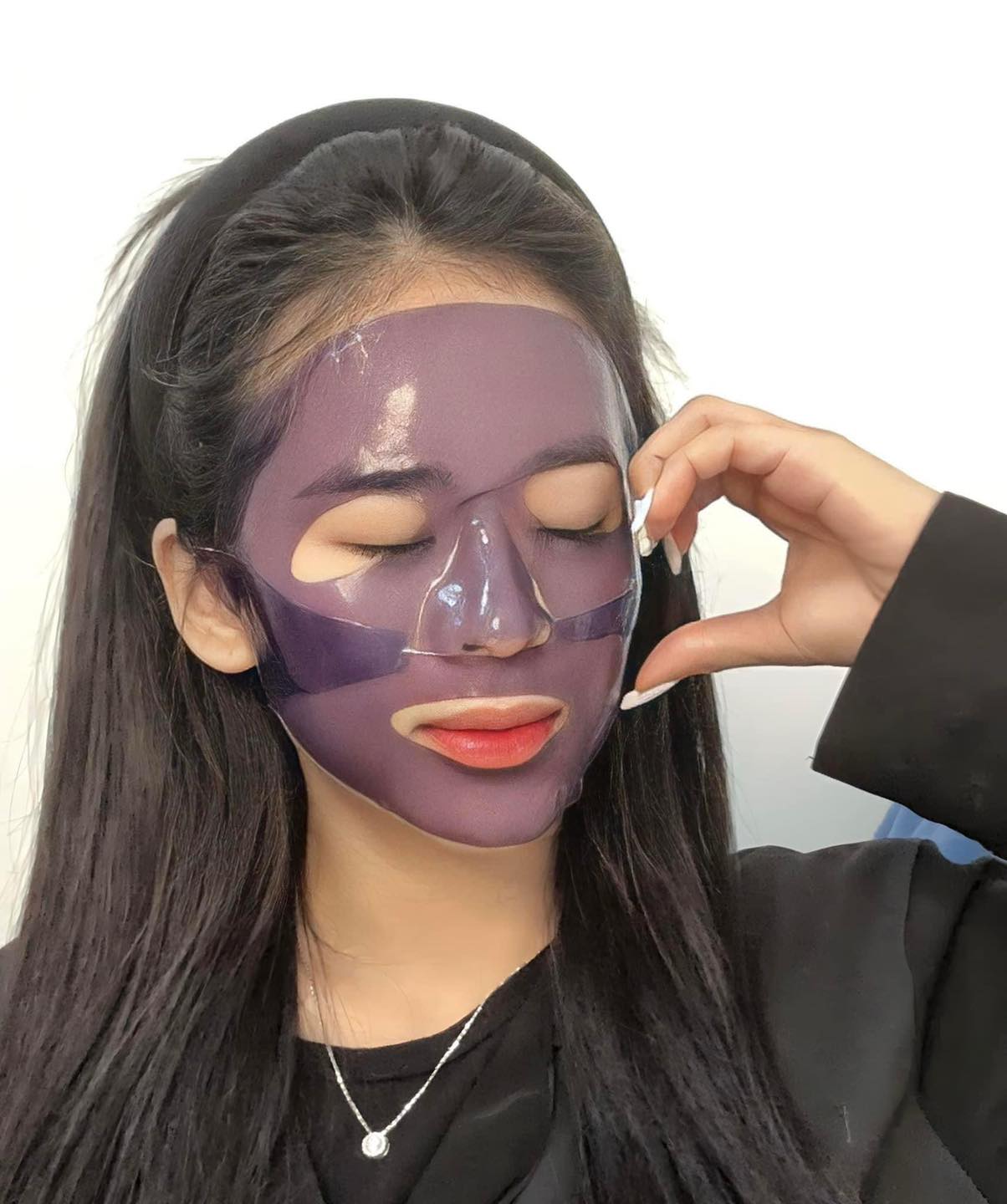 + Bước 2: lấy mặt nạ từ trong bao bì sau đó đắp lên vừa vặn với khuôn mặt và ấn nhẹ nhàng cho mặt nạ bám khít vào da