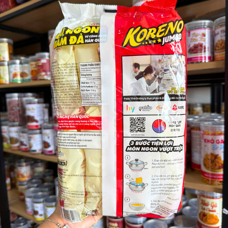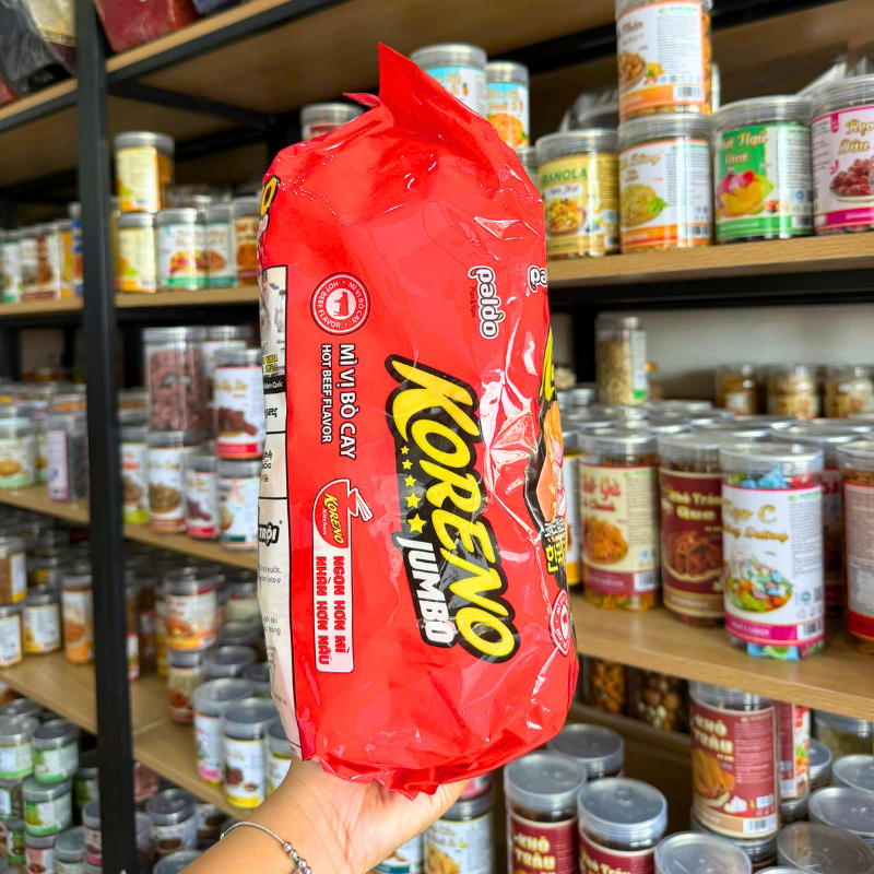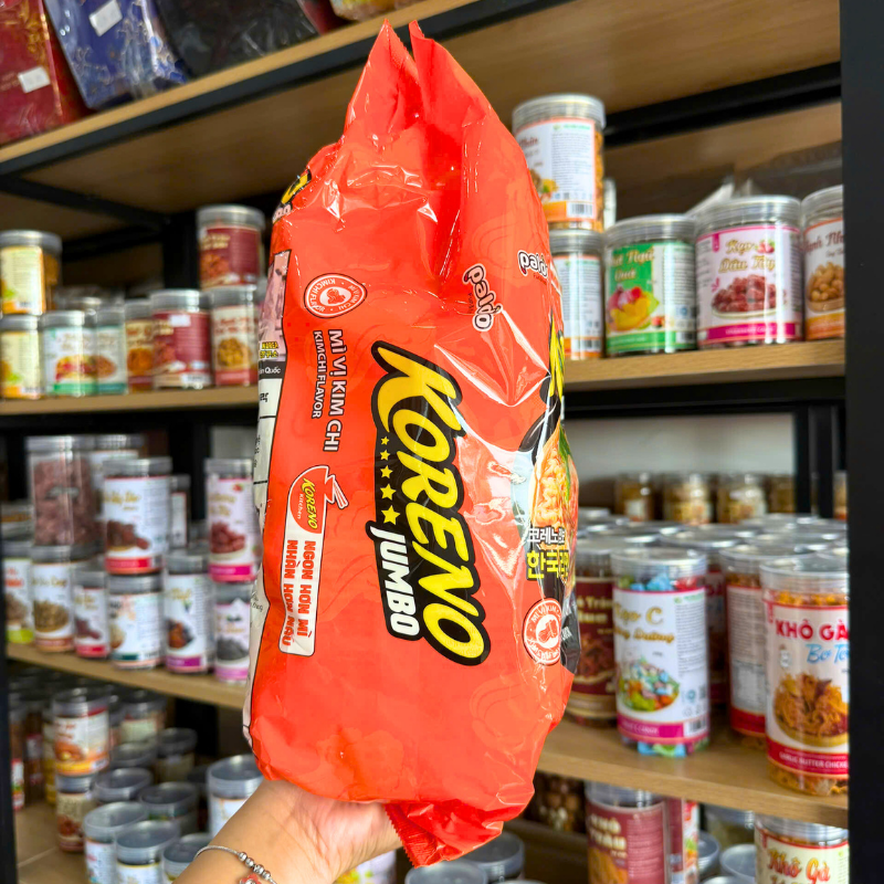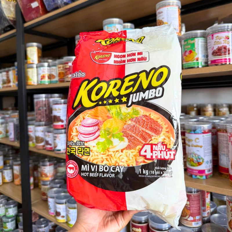 Nguồn sỉ mì Cay Koreno Jumbo Vị Bò – Vị Kim Chi – Mì Cay Hàn Quốc Túi 1kg (10 Gói x 100g)