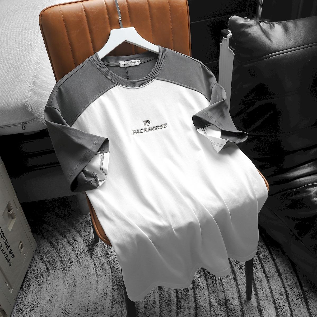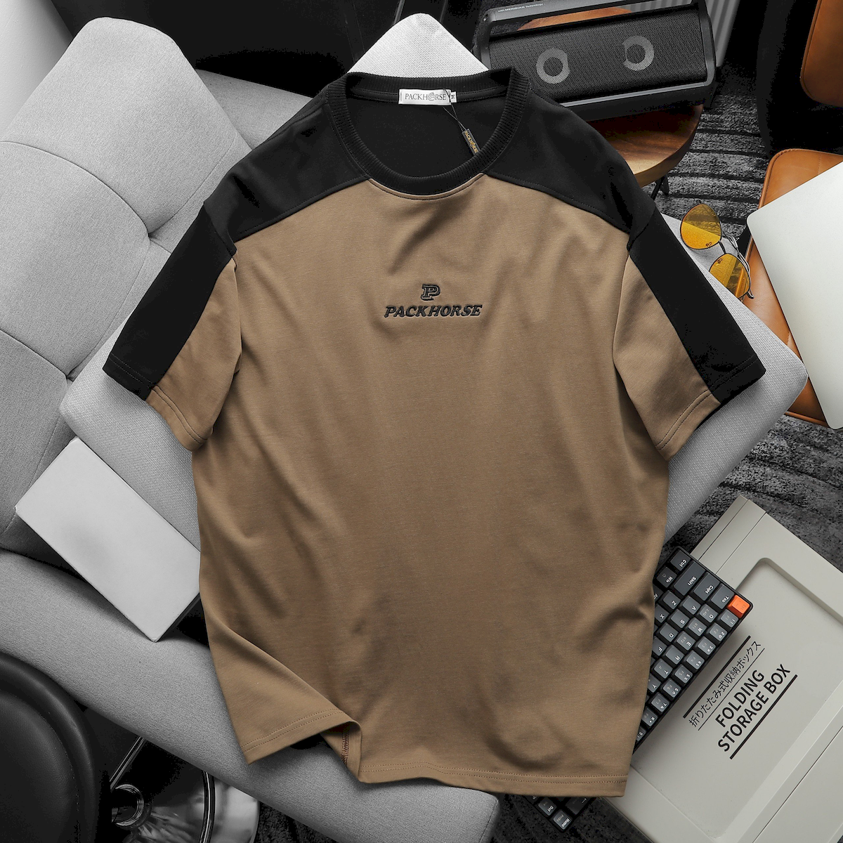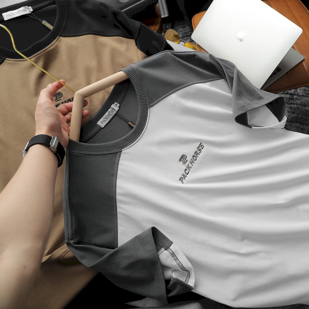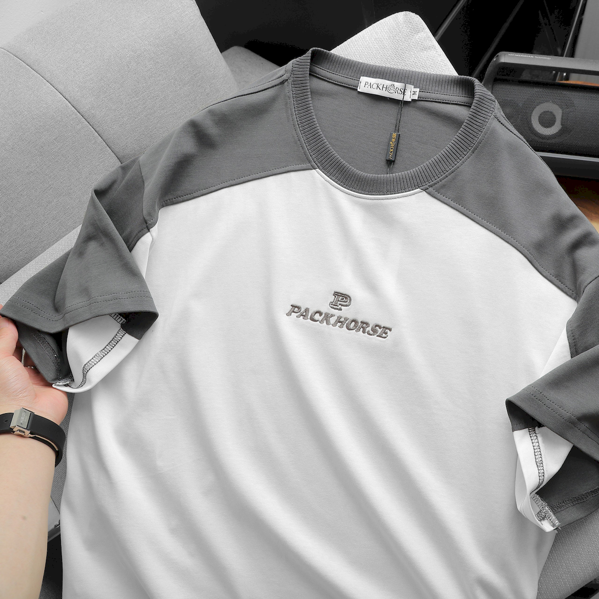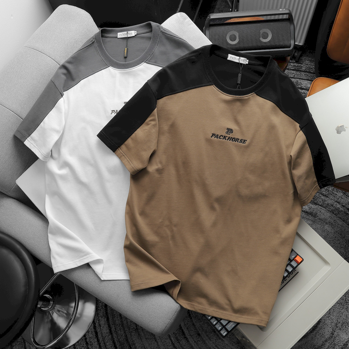 Phân phối áo Thun Nam Cổ Tròn Oversize Tay Phối Màu Thêu Chữ PackHorse