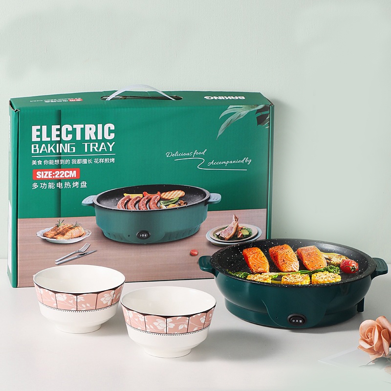Bếp Nướng Điện Chống Dính Tráng Men Cao Cấp Bếp Nướng Thịt 26cm