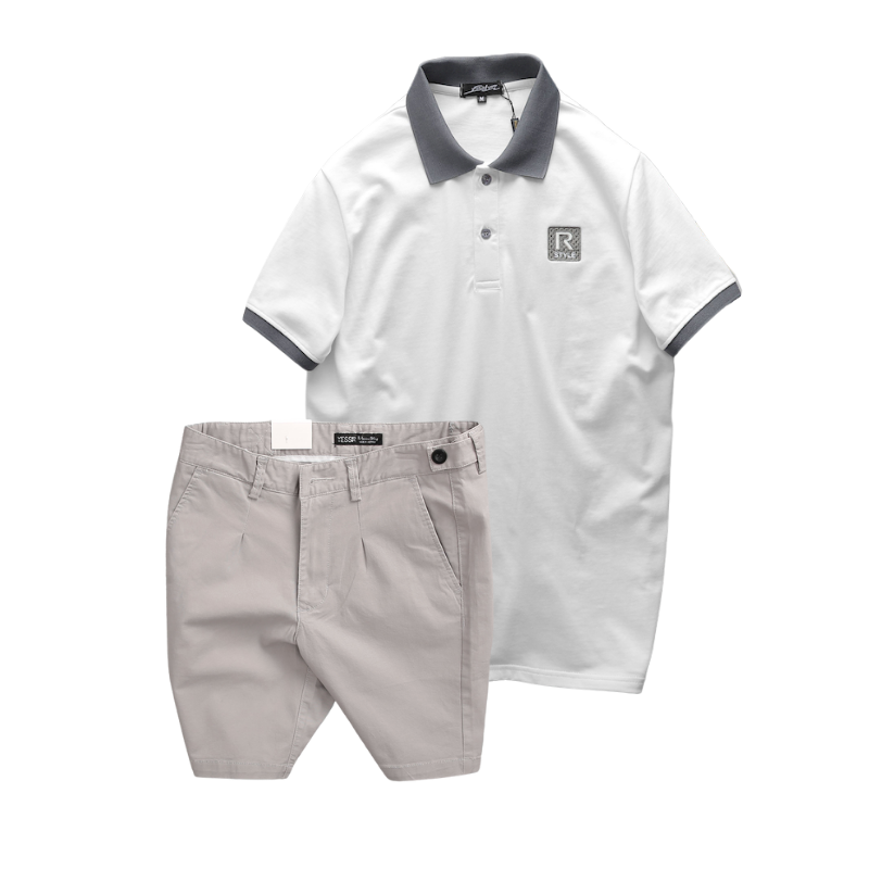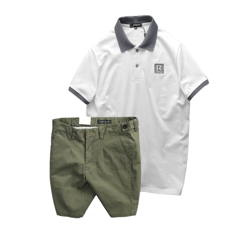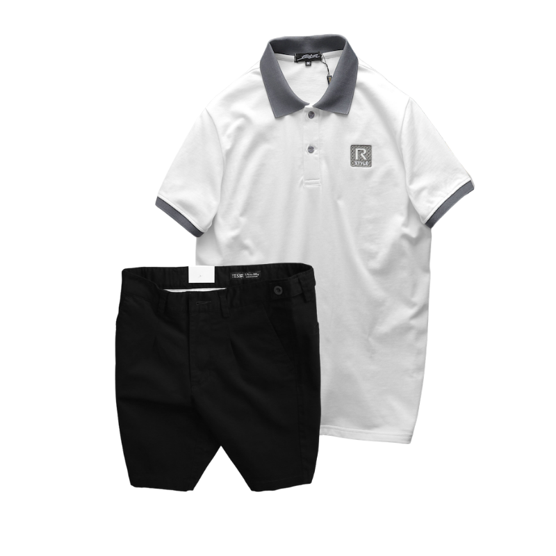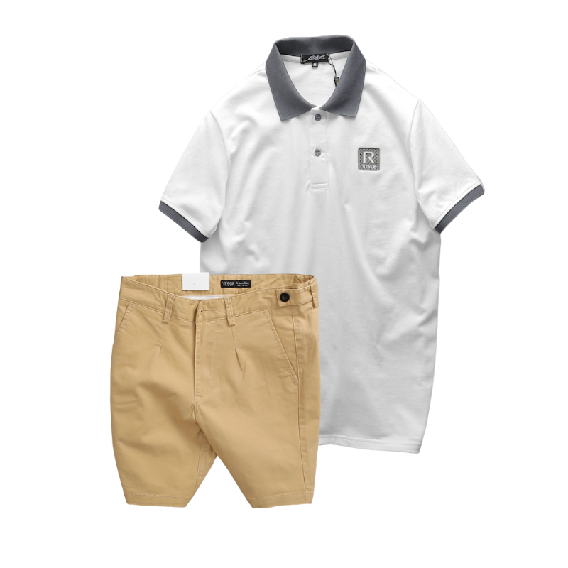 Phân phối set Bộ Nam Áo Thun Nam Polo Cổ Bẻ Thêu Logo R Style & Quần Short Kaki Co Giãn Phối Nút Cao Cấp (Có Size 36)