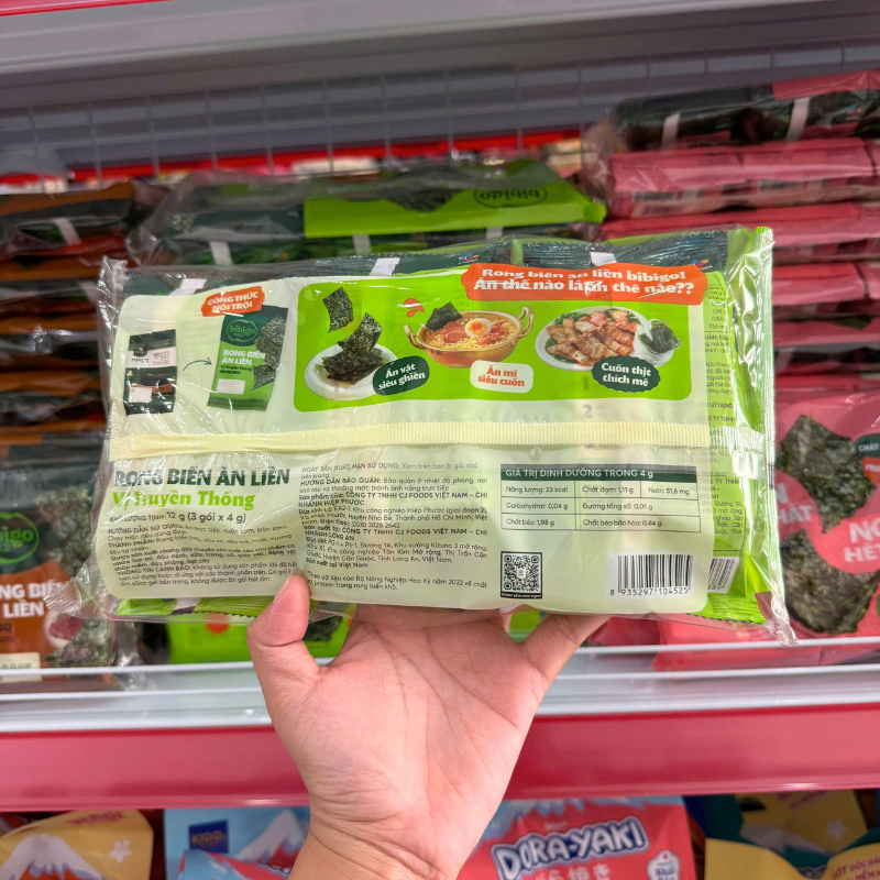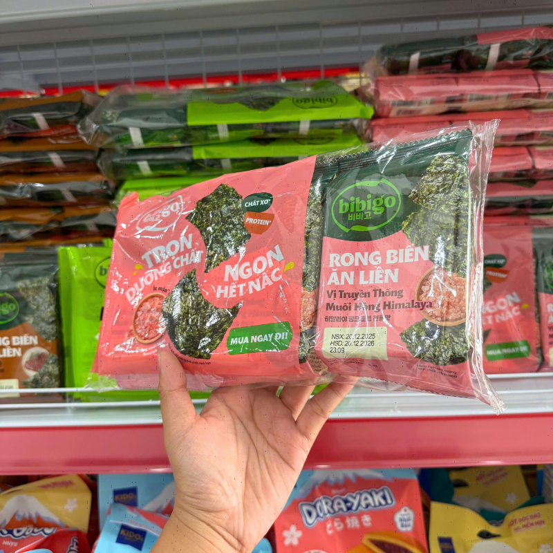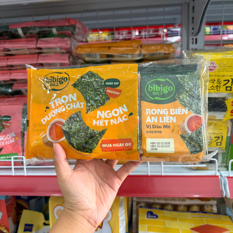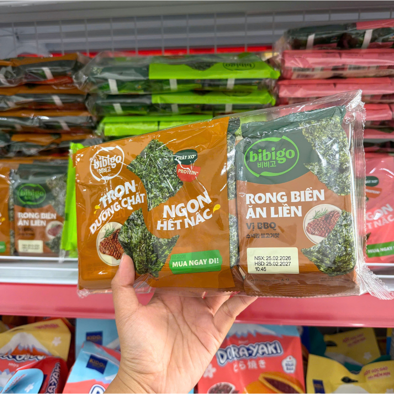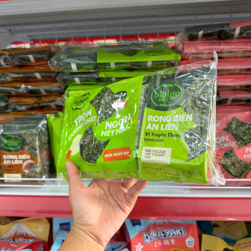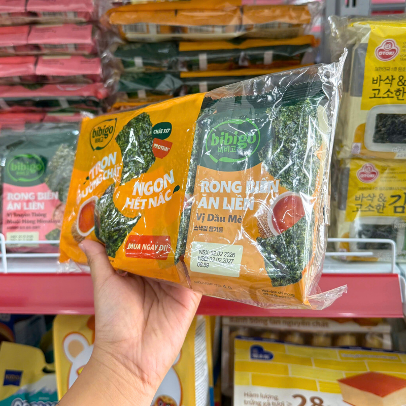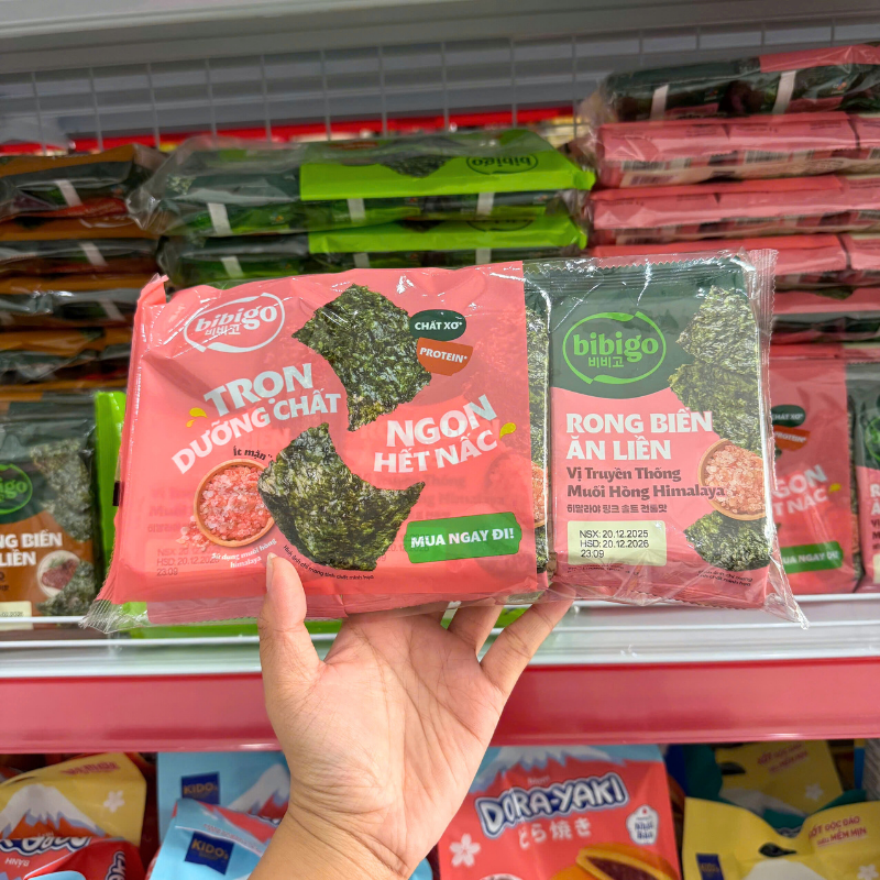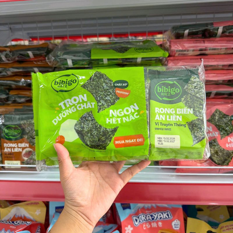 Rong Biển Ăn Liền Bibigo Gồm 4 Vị (Truyền Thống, Dầu Mè, Muối Hồng, BBQ) – 1 Lốc 3 Gói
