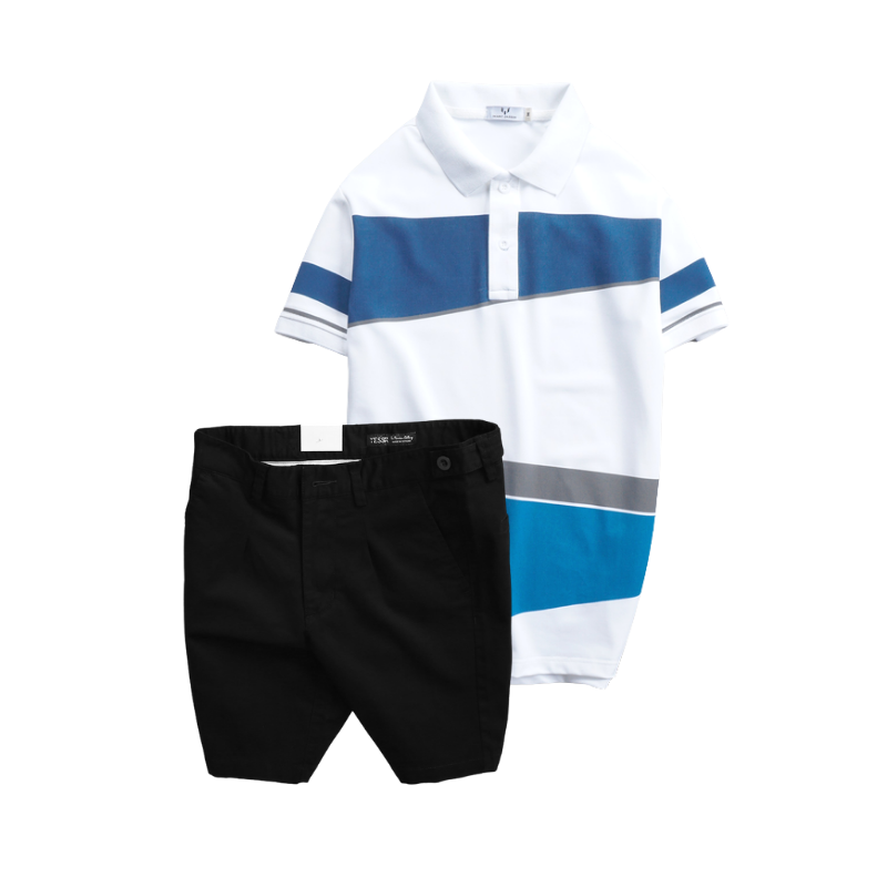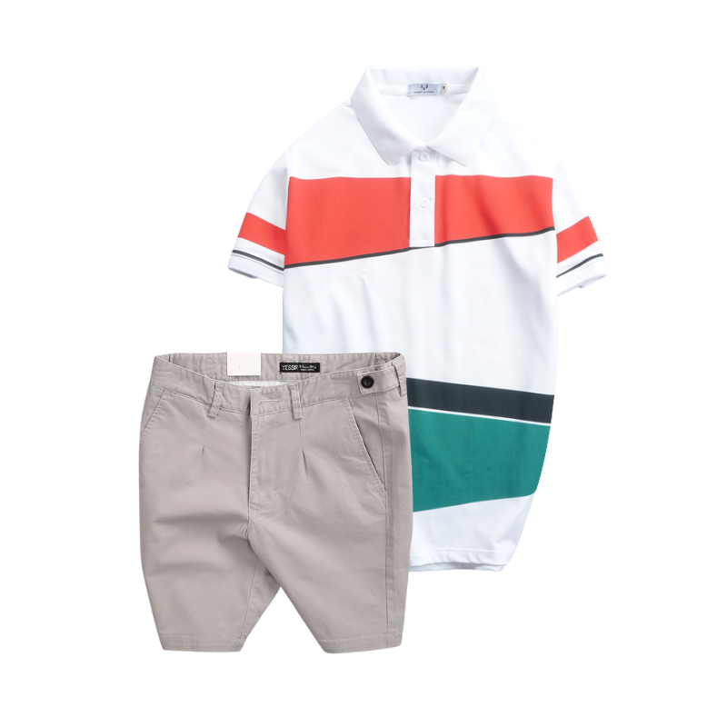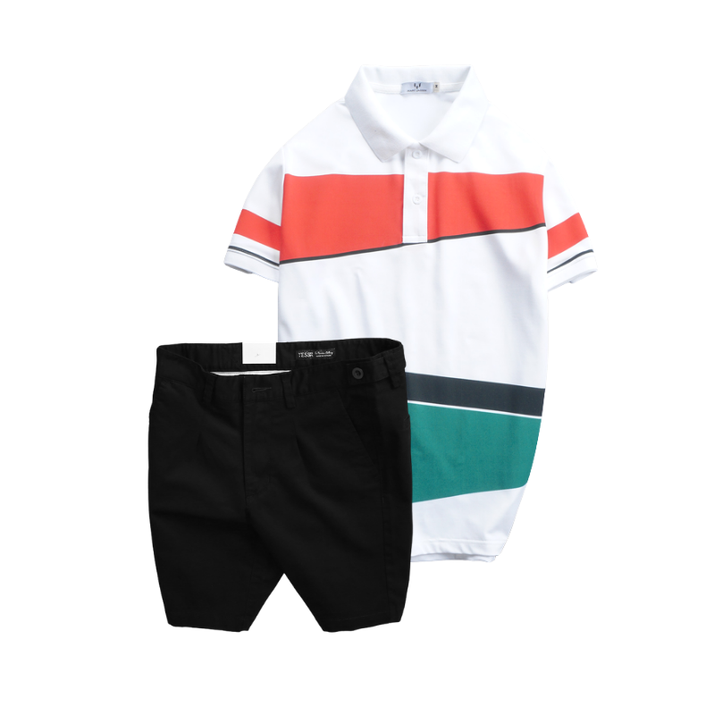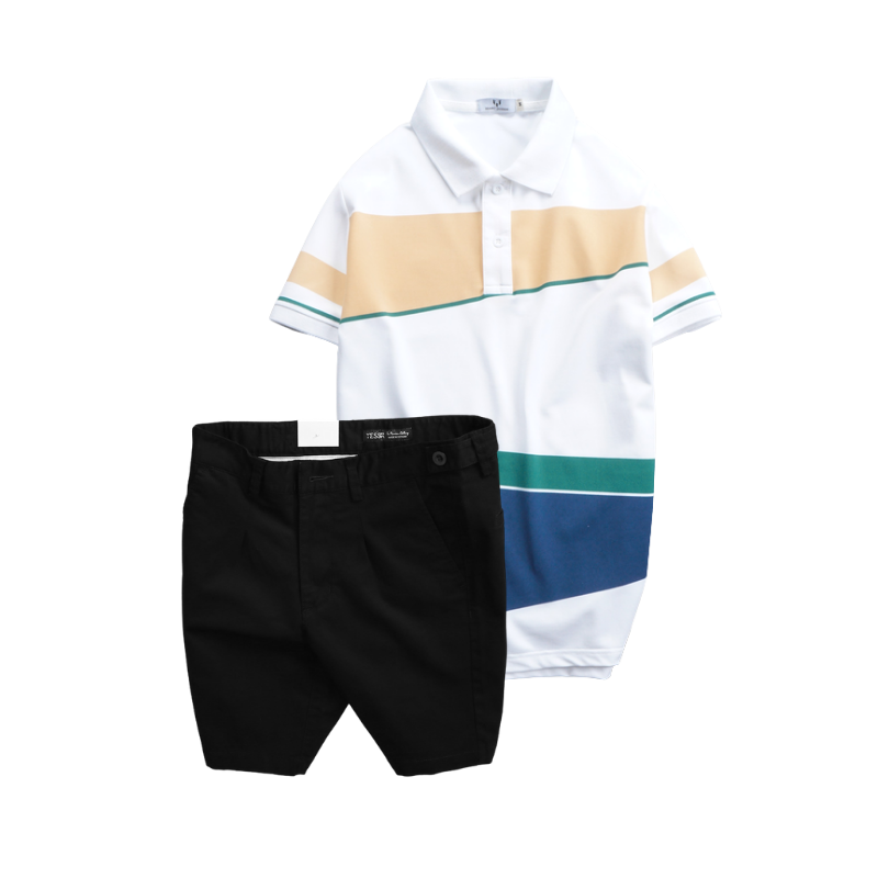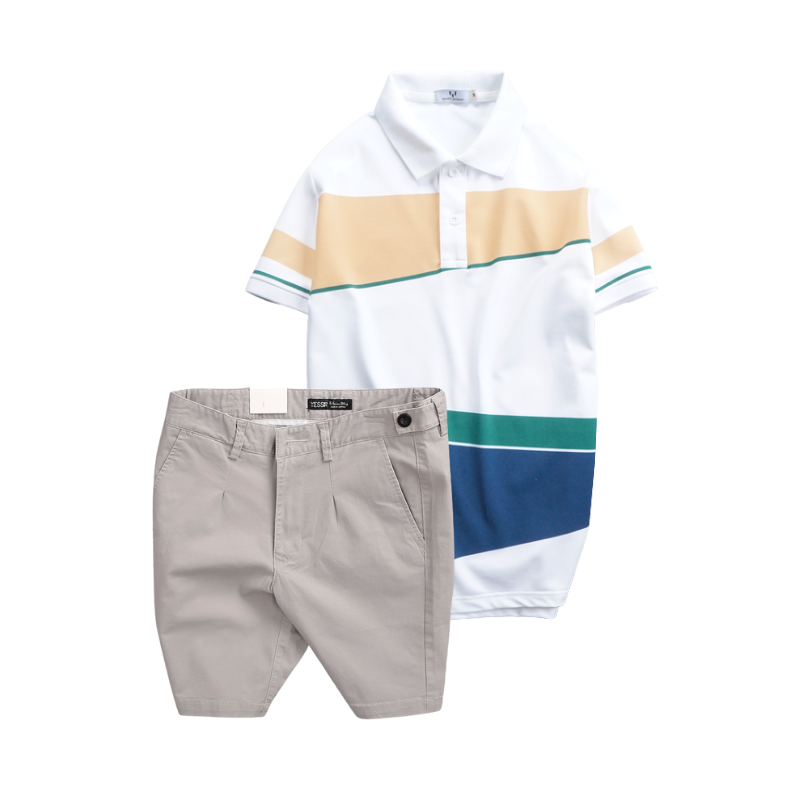 Set Bộ Nam – Áo Thun Nam Polo Cổ Bẻ Vải Thun Cá Sấu Poly Phối Kẻ Sọc Màu Và Quần Short Kaki Co Giãn Phối Nút Cao Cấp (Có Size 36)