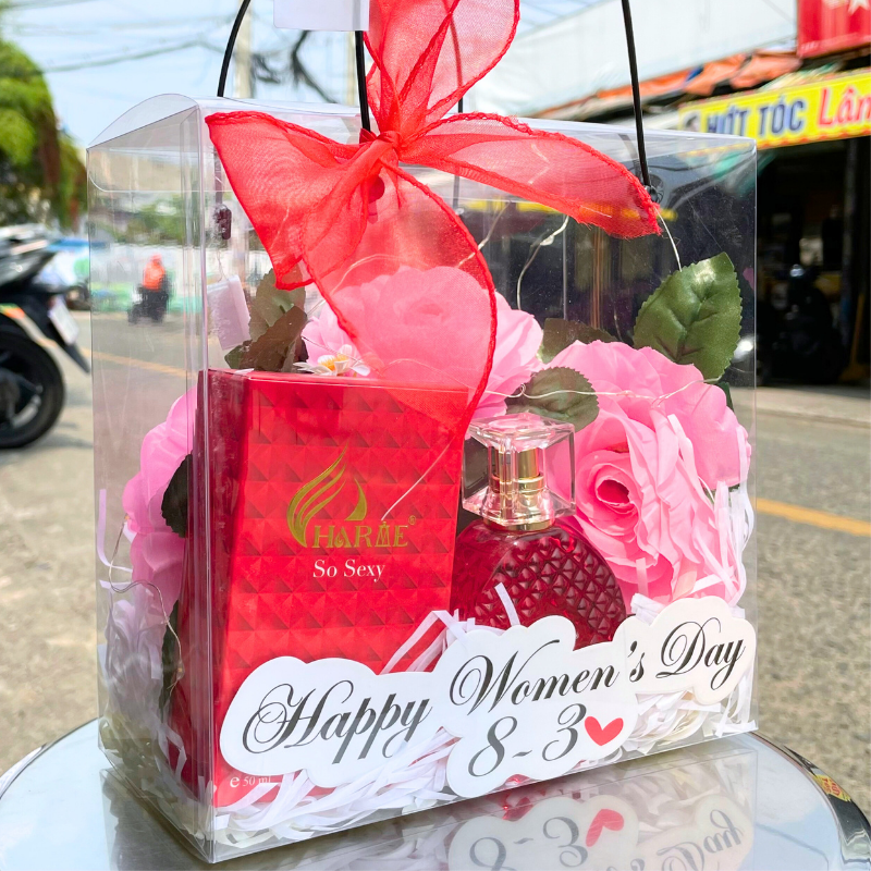 Set Quà Tặng Nước Hoa Nữ Charme So Sexy 50ml – Túi Trong Vuông Có Đèn Đom Đóm Lót Giấy Rơm Thắt Nơ Xinh Xắn Nhiều Màu