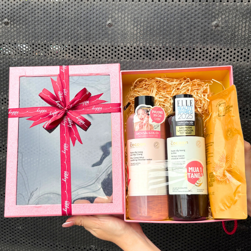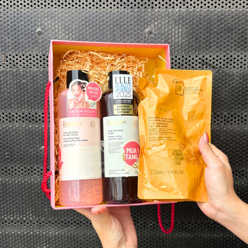 Set Quà Tặng Nước Tẩy Trang Sen Hậu Giang 500ml & Nước Tẩy Trang Bí Đao Cocoon 500ml & Tẩy Tế Bào Chết Body Đường Thốt Nốt An Giang 200ml