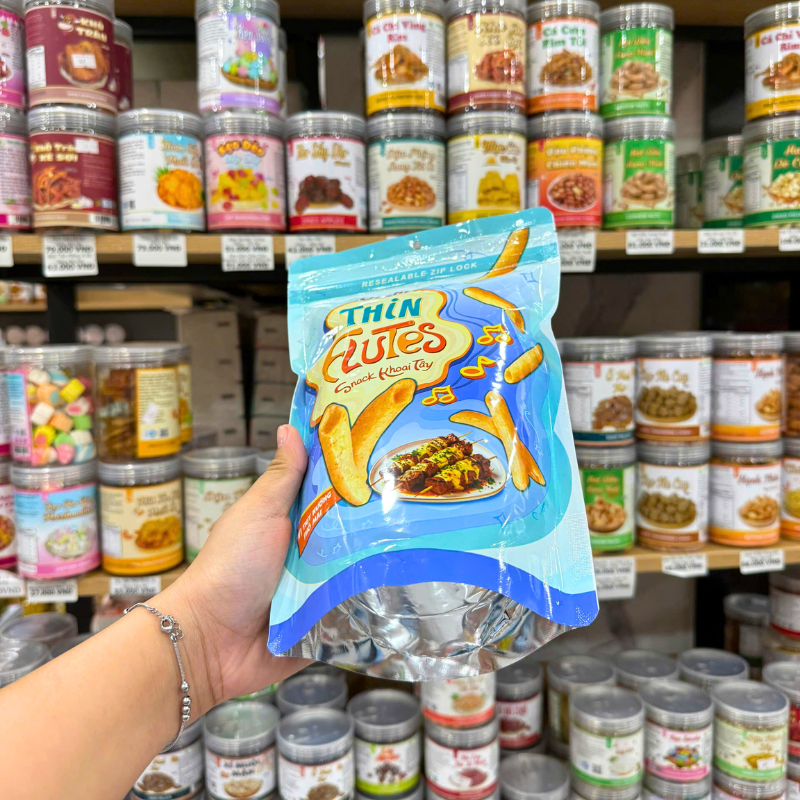 Snack Khoai Tây Oishi Vị Thịt Nướng Phô Mai 50g