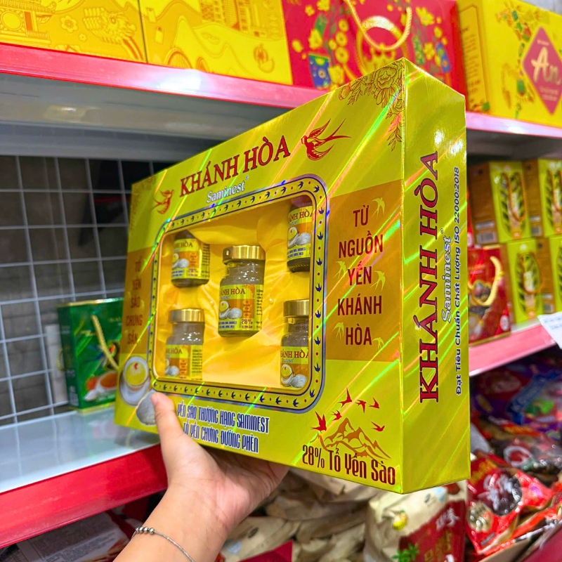 Yến Chưng Đường Phèn Khánh Hòa Saminest 28% Set 5 Hủ 70ml Hộp Màu Vàng